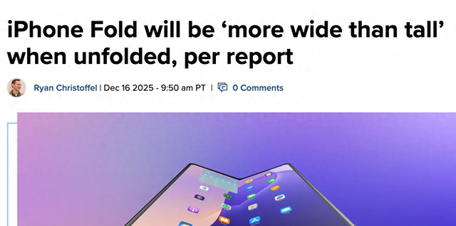 [群众网科技抽象报说念]12月17日音讯,据9to5mac报说念,苹果公司正在敲定来岁旗舰iPhone系列的计算决策,其中备受瞩指标iPhoneFold(暂称)有了新的计算细节曝光,不同于市面上其他家具,其外形计算或禁受特有宽屏(宽度大于高度)。