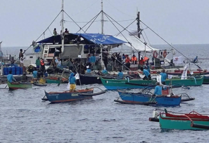 最近,菲律宾国内的某些组织,再次有预谋地纠集无数渔船,有利冲闯仙宾礁潟湖,靠近向前法则的中国海警,这些东谈主不仅无视提醒,甚而还掏出芒刃威迫法则东谈主员。